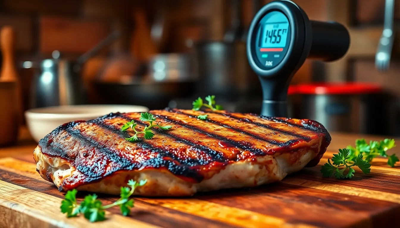A meat thermometer provides the most accurate way to check doneness. Insert the thermometer into the thickest part of the chop, avoiding bones, to get a precise reading. Target a temperature of 145°F for safe consumption, allowing for a final temperature of about 150°F post-cooking due to carryover cooking. For thinner cuts, stop at 140°F. Investing in a digital meat thermometer enhances cooking accuracy and reduces the risk of overcooking, ensuring juicy results every time.